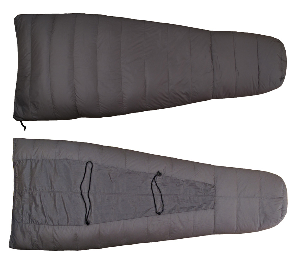 - Sac de couchage de type 'Top Bag' (sans garnissage en dessous).