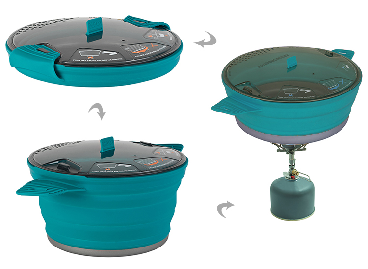 Le Sea To Summit X-Pot 2,8 litres est une popote repliable qui vous permettra de chauffer votre repas sur votre réchaud.